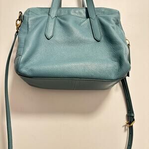 Fossil Bag Womens Size Medium Blue Leather Satchel Crossbody Top Handle Purse