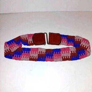 Fossil Beaded Stretch Genuine Leather Belt Size Medium Multicolored. Slide in closure