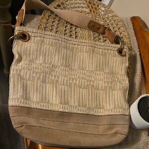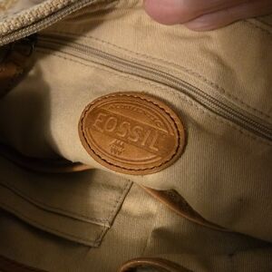 Fossil Beige and Tan Shoulder Bag Boho Style Preloved