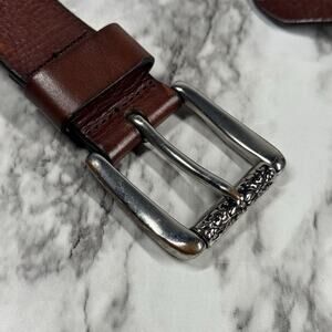 Fossil Belt M Brown Leather Floral Laser Cut Silver Tone Etch Roll Bar Buckle