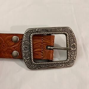 Fossil, Leather belt, Tooled, Studded, Floral, Metal buckle, boho, western, festival, rodeo, gypsy