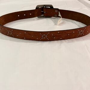 Fossil Belt Brown Genuine Leather Tooled Studded Western Metal Buckle Floral