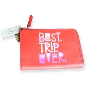 New Fossil Red Best Trip Ever Leather RFIDm Travel Passport Wallet