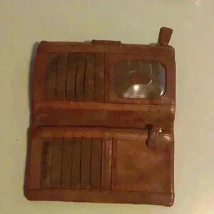 Preowned but in good condition l. Minor wear. Fossil leather wallet. Betsey Johnson heart detail wrist wallet.