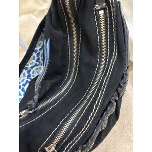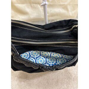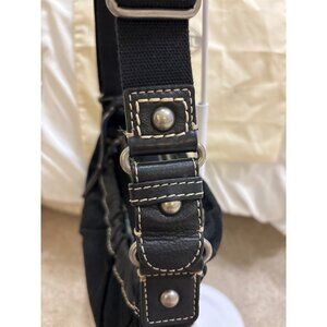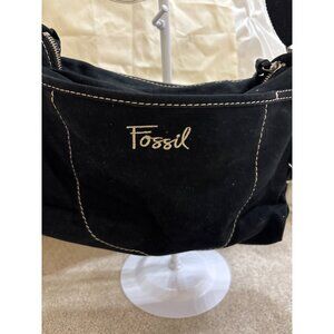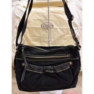 Fossil Black Canvas & Faux Leather Shoulder Bag With Adjustable Strap