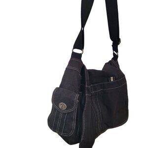 Fossil Black Canvas Shoulder Messenger Bag With Multiple Pockets Adj Strap