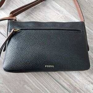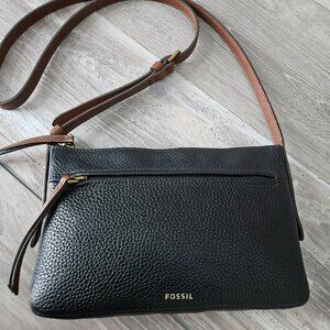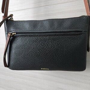 Fossil Black Cow Hide Leather Crossbody Bag Adjustable Strap Vintage Purse Small