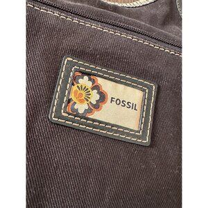 Fossil Black Crossbody Canvas Bag Embroidered Floral Patch & Adjustable …