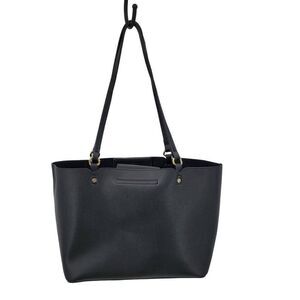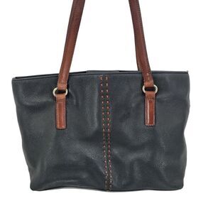 Fossil Black Genuine Leather Tote Bag Pebble Brown Embroidery Western City Med