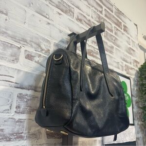Fossilbag with a sleek black leather. Features a gold zipper for a touch of elegance.