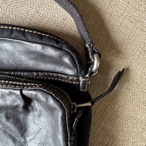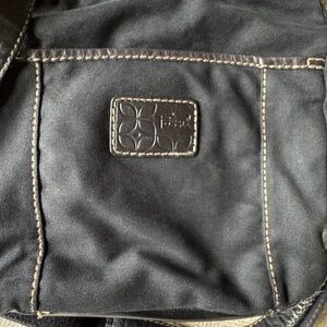 This Fossil crossbody bag is a versatile everyday companion. Crafted from durable black canvas with leather accents, it features an adjustable strap for comfortable wear and multiple pockets to keep all your essentials organized. Perfect for casual outings, errands, or travel, this bag combines practical functionality with classic style. Well-loved but in great condition, with only minimal wear from regular use.