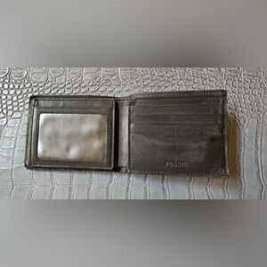 Leather Wallet Mens black Elegante Fossil card holder in rich leather. Ideal for daily essentials.