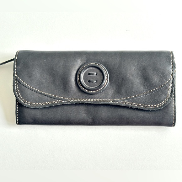 Fossil Black Leather Clutch Wallet Flap snap closure SWL 9689