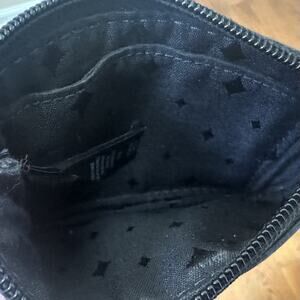 Fossil Black Leather Coin Purse Card Holder Wallet W ID Window Small Zip Pouch