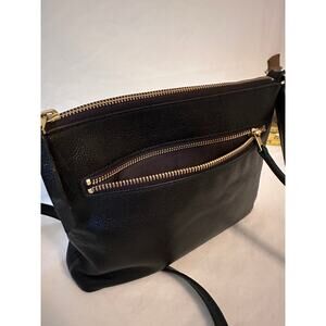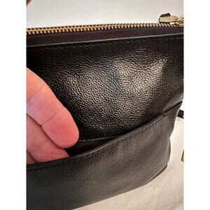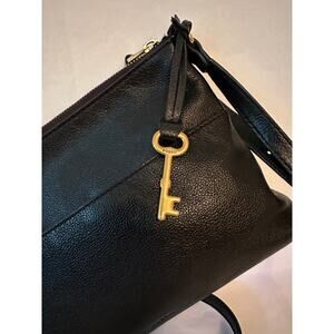 This is a beautiful Fossil black leather crossbody bag, perfect for everyday use! It features a stylish key charm that adds a touch of elegance.