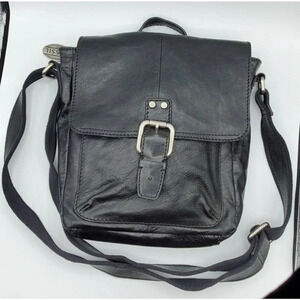 Fossil Black Leather Decker City Shoulder Bag Purs