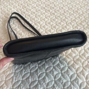 Fossil Black Leather Dual-strap Handle Shoulder Bag W/Fold-over Phone Pocket Zip