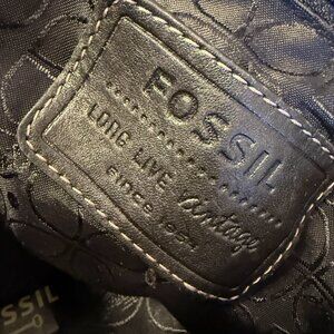 Fossil Black Leather Handbag Purse White Stitching Shoulder Strap