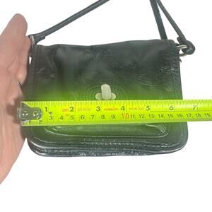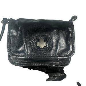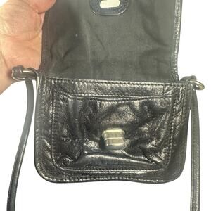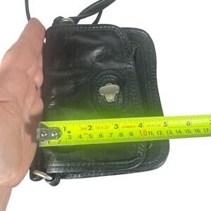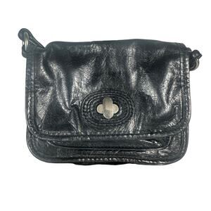 Fossil Black Leather Small Crossbody Bag Adjustable Strap Vintage Turn Lock