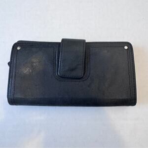 Fossil Black Leather Wallet Women’s Bifold Double Snap Extra Pockets