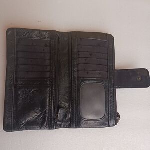 Elegant Fossil wallet crafted in black leather. Features a gold-tone logo plate for a touch of luxury.