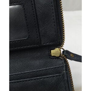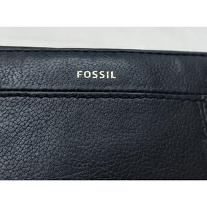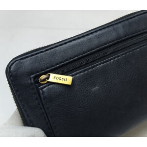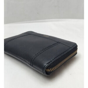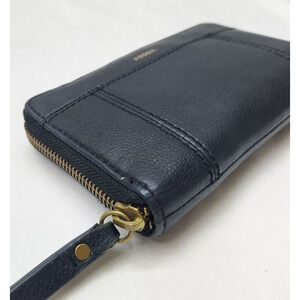 Fossil Black Leather Zip Arpimd Credit Card Wristlet - Wallet