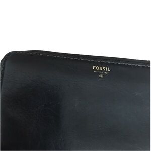 Fossil Black Leather Zip Wristlet Wallet