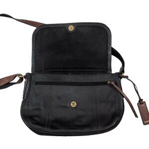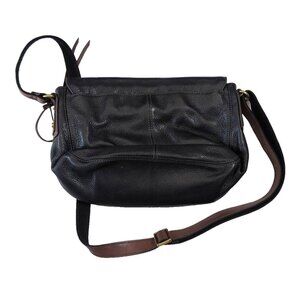 Fossil Black Pebbled Black Leather Crossbody Bag Crossbody Purse with Brown Trim
