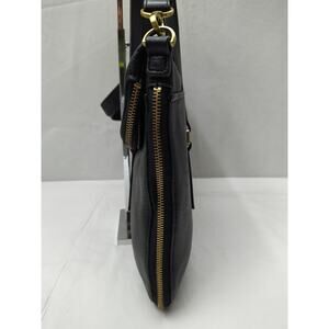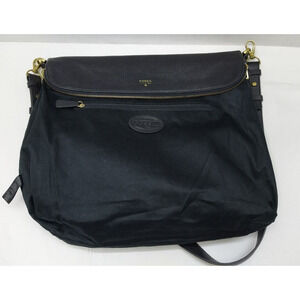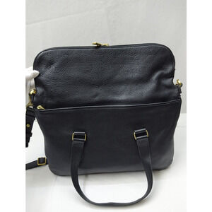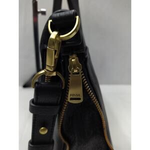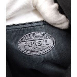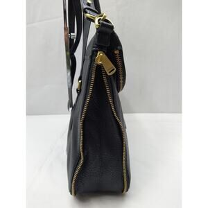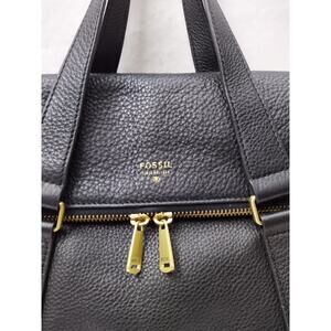 Fossil Black Pebbled Expandable Zipper Double Handles Satchel Shoulder Bag