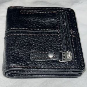 Fossil Black Pebbled Leather Bifold Wallet EUC