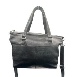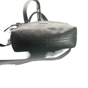 Fossil Black Pebbled Leather Satchel Crossbody Bag Silver Hardware Key Charm