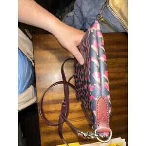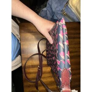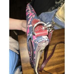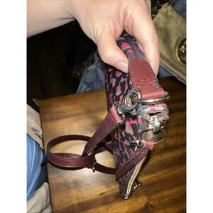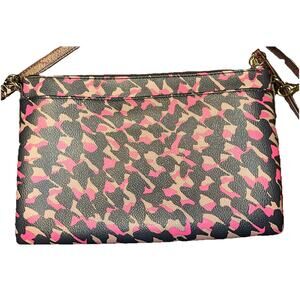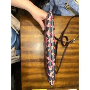 Fossil Black Pink And Tan Clutch Crossbody Handbag Leather 11x7 Inch