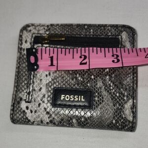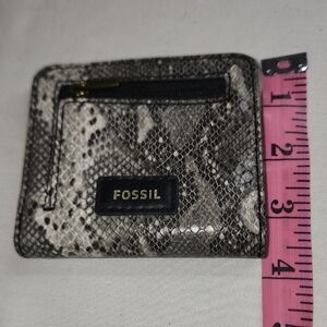 Chic Fossil card holder with a snake print. Includes a convenient zip pocket.
