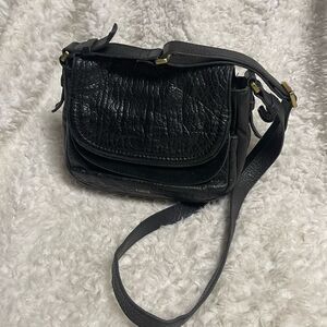 Fossil Black Leather double flop Crossbody Bag gold tone hardwares .