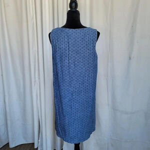 Fossil Blue Denim Jeans Shift Dress Lined Pleated Neck Women's Sz Medium