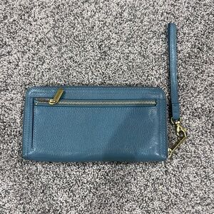 Fossil Blue Genuine Leather Zip around Clutch Wallet Full Size Removable Strap