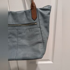 Fossil Blue Gray Fiona Tote with Brown Accents