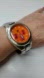Vtg Fossil Blue Watch BQ-9074 Silver Steel Wristband Orange Face Chronograph Watch