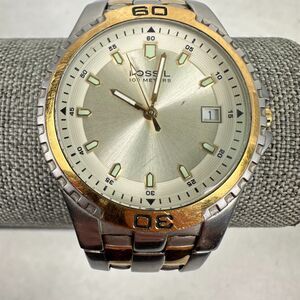 Fossil Blue Watch Mens 38mm Date Rotating Bezel Two Tone AM-3886 New Battery