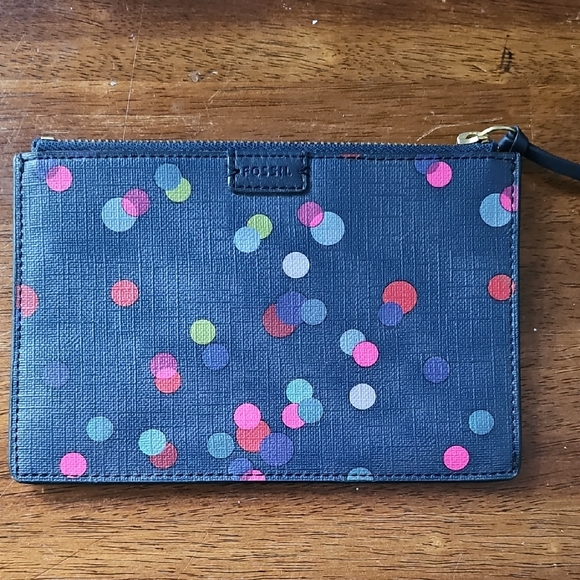 Fossil Blue Wristlet with Colorful Dots