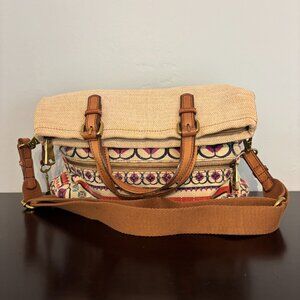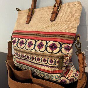 Fossil Bohemian Style Cream Geometric Design Explorer Fold Over Tote