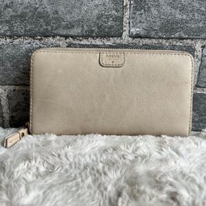 Fossil Bone Colored Leather Zip Wallet