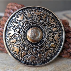 Fossil Braided Brown Leather Belt Medallion Buckle Size Medium