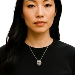 Fossil Brand Bird Owl Pendant Necklace Pave 2 Tone Jewelry Party Animal NEW NWT