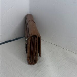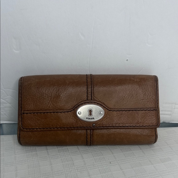 Fossil British tan Pebble Leather Triple Compartments Bifold Clutch Wallet