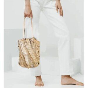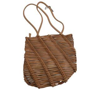 Elegant braided leather design. Roomy interior. Strong leather handles. Ideal for daily use. Purchased with no visible wear, has not been used by me. Stored stuffed, smoke free, scent free, no pets in allowed purse closet.