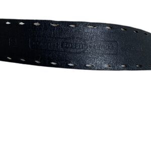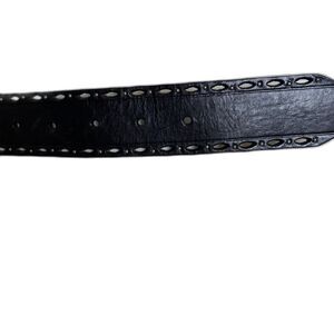Classic and rugged with a touch of sparkle, this Fossil brown leather belt features a metal buckle and rhinestone accents. Subtle wear around the eyelets adds character. Versatile accessory for casual, western, or boho-inspired looks.
