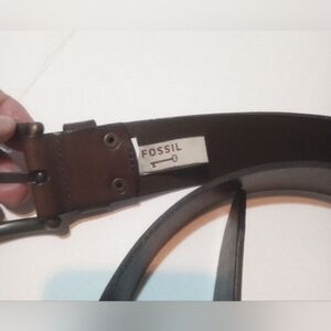 The Fossil Brown Leather Belt is a stylish accessory for women, featuring riveted sections and an embossed logo. Made from high-quality leather with bronze hardware, this belt adds a touch of sophistication to any outfit. The adjustable medium width and size L make it a versatile piece that can complement a variety of waist sizes. Perfect for everyday wear or special occasions, this belt is a timeless addition to any wardrobe.