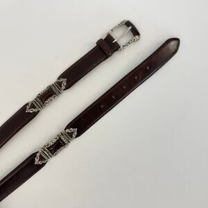 Fossil Brown Leather Belt Silver-Tone Hardware Boho Design Size M