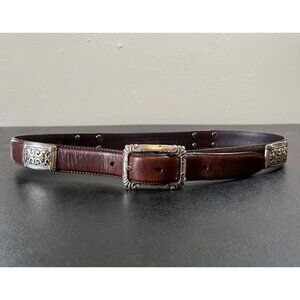 Fossil Brown Leather Belt Western Silver Tone Buckle & Conchos Womens Medium